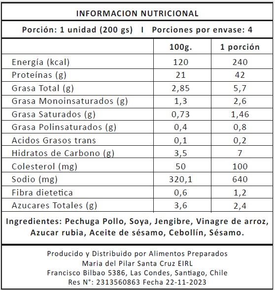 Formato: 2 Bolsas de 400 grs sellada al vacío y congelada